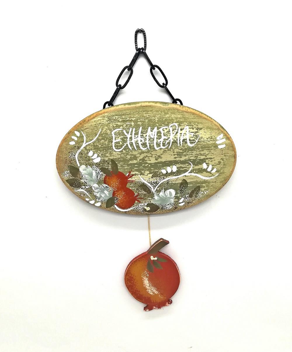 Επιτοίχιο ξύλινο οβάλ σχήμα ζωγραφισμένο με Ρόδια. Μήνυμα “Ευημερία”