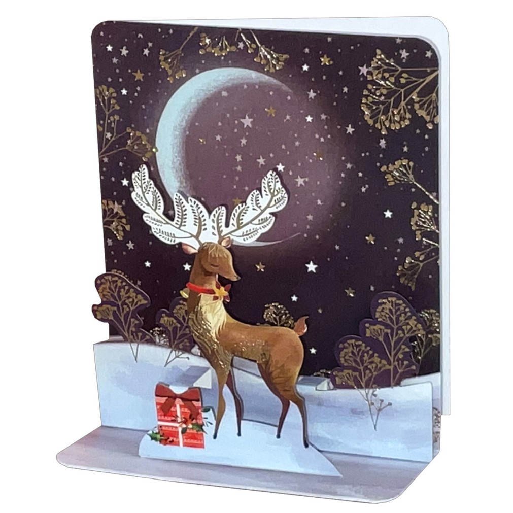Ευχετήρια κάρτα 3D Τάρανδος στο χιόνι 10 x12 cm