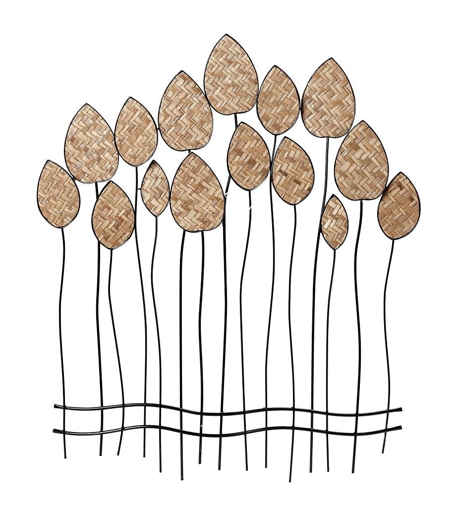 Διακοσμητικό Espiel μεταλλικό τοίχου με φύλλα απο ψάθα μπεζ 66x78 cm