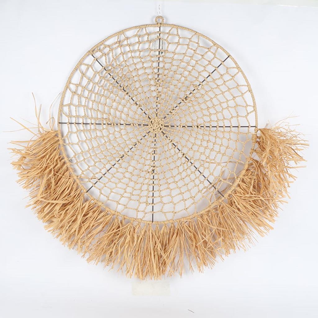 Επιτοίχιο διακοσμητικό Espiel ψάθινο στρογγυλό με κρόσια μπεζ 88x74 cm