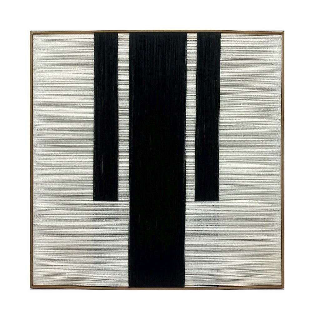 Πίνακας Espiel ξύλινη κορνίζα και νήμα μπεζ - μαύρος 71x71x3,5 cm
