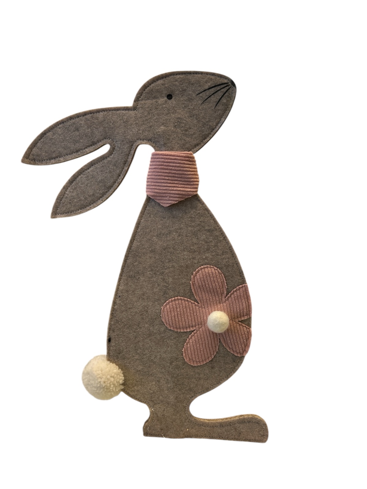 Κουνέλι τσόχινο 45 cm με κασκόλ σε ξύλινη βάση