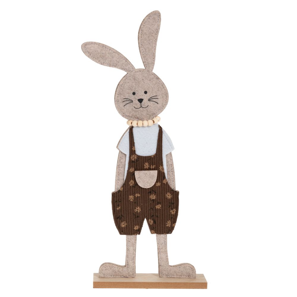 Λαγός τσόχινος 15x5x37 cm καφέ σε ξύλινη βάση