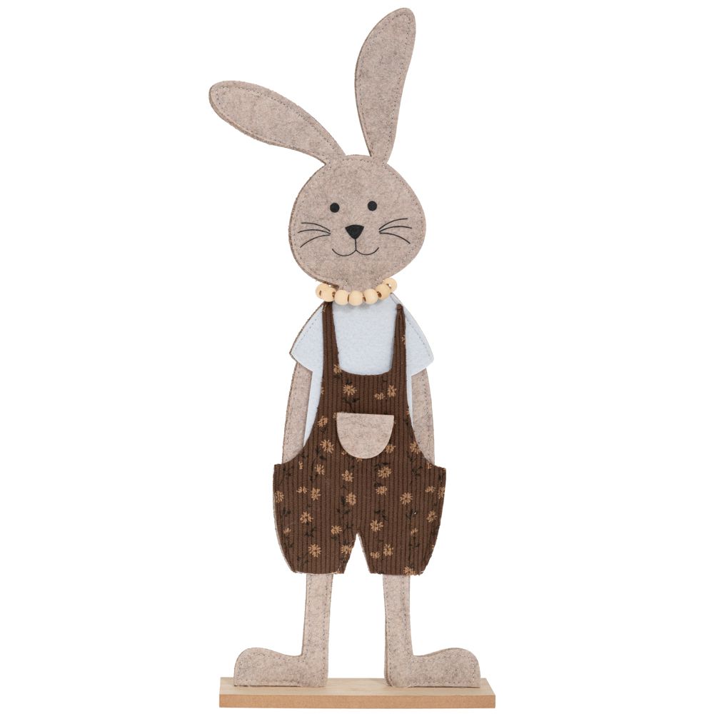 Λαγός τσόχινος 18x5x46 cm καφέ σε ξύλινη βάση