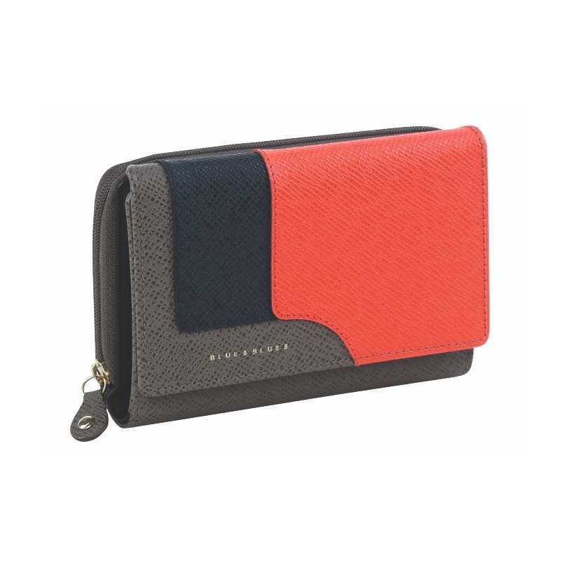 Δερμάτινο πορτοφόλι- Καφέ/Πορτοκαλί/Μπλε 14x9,5 cm