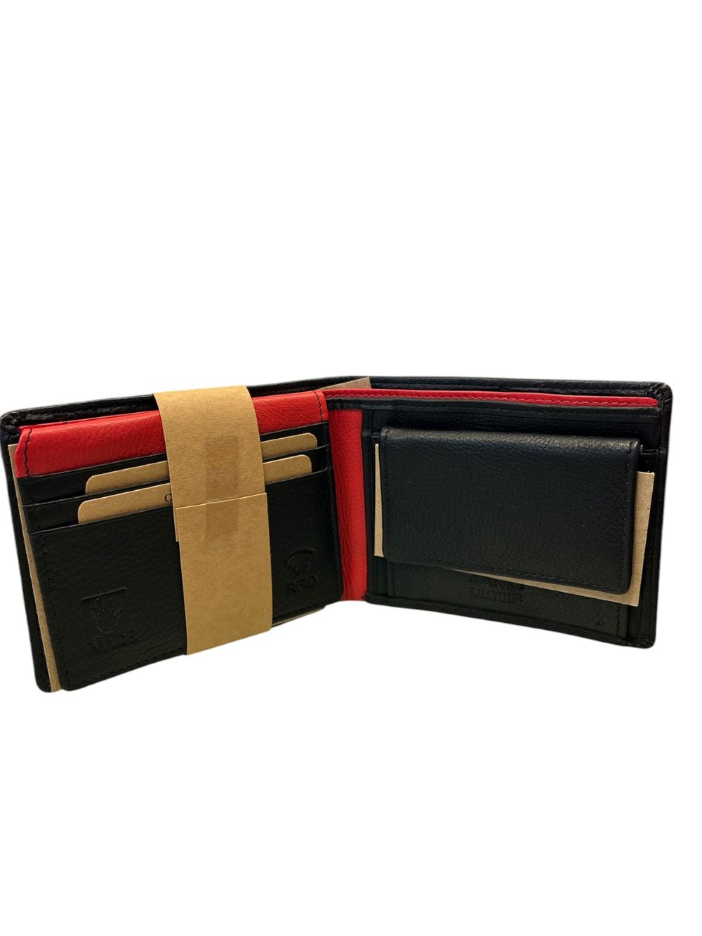 Πορτοφόλι ανδρικό γνήσιο δέρμα μαλακό μαύρο - κόκκινο