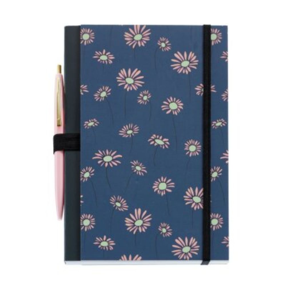 Σημειωματάριο Α5 Happy daisies με λάστιχο και στυλό ballpoint 96Φ