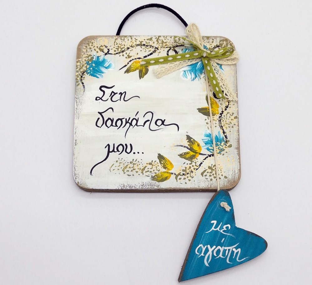 Επιτοίχιο με κρεμαστή καρδούλα ” για την δασκάλα μου 10x15 cm