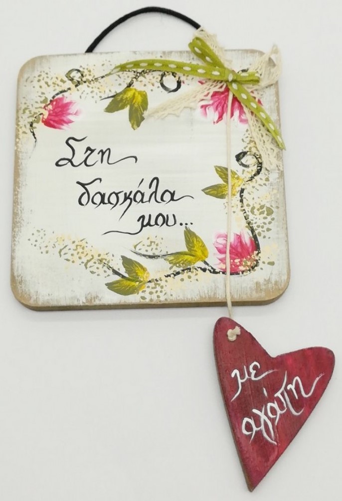 Επιτοίχιο με κρεμαστή καρδούλα ” για την δασκάλα μου 10x15 cm