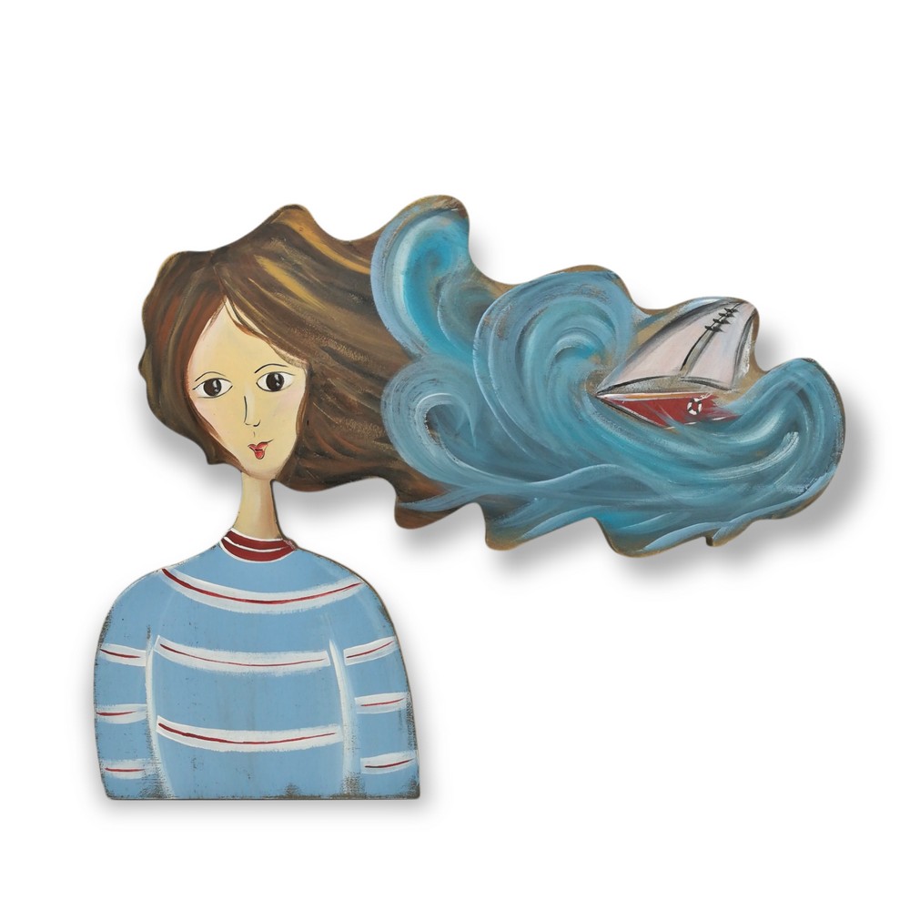 Επιτοίχιο ξύλινο κοπέλα καράβι στα μαλλιά 27x36 cm