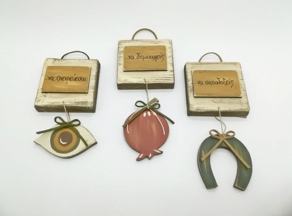 Επιτοίχιο ξύλινο ταμπελάκι με κρεμαστά στοιχεία και μήνυμα...να αισιοδοξείς... 9x16 cm