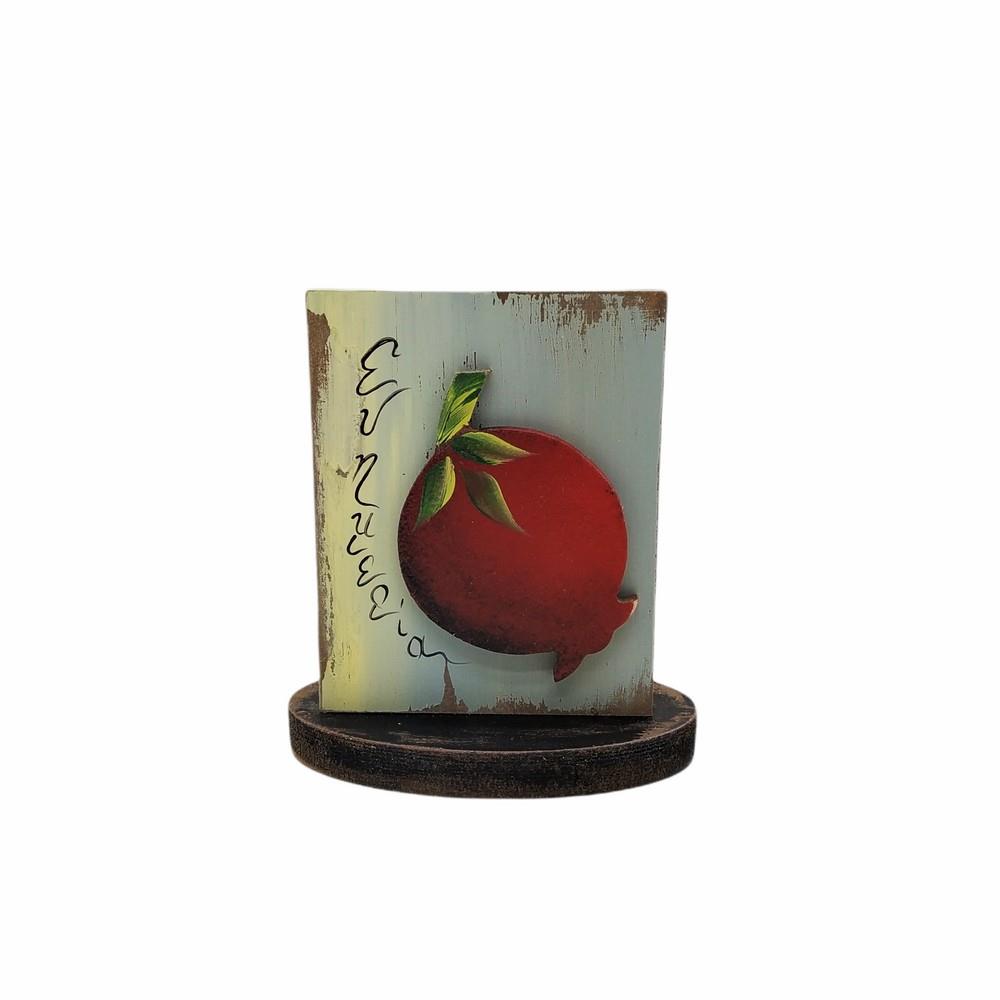Επιτραπέζιο γούρι με σχέδιο ρόδι και μήνυμα " Ευημερία " 11x11,5 cm