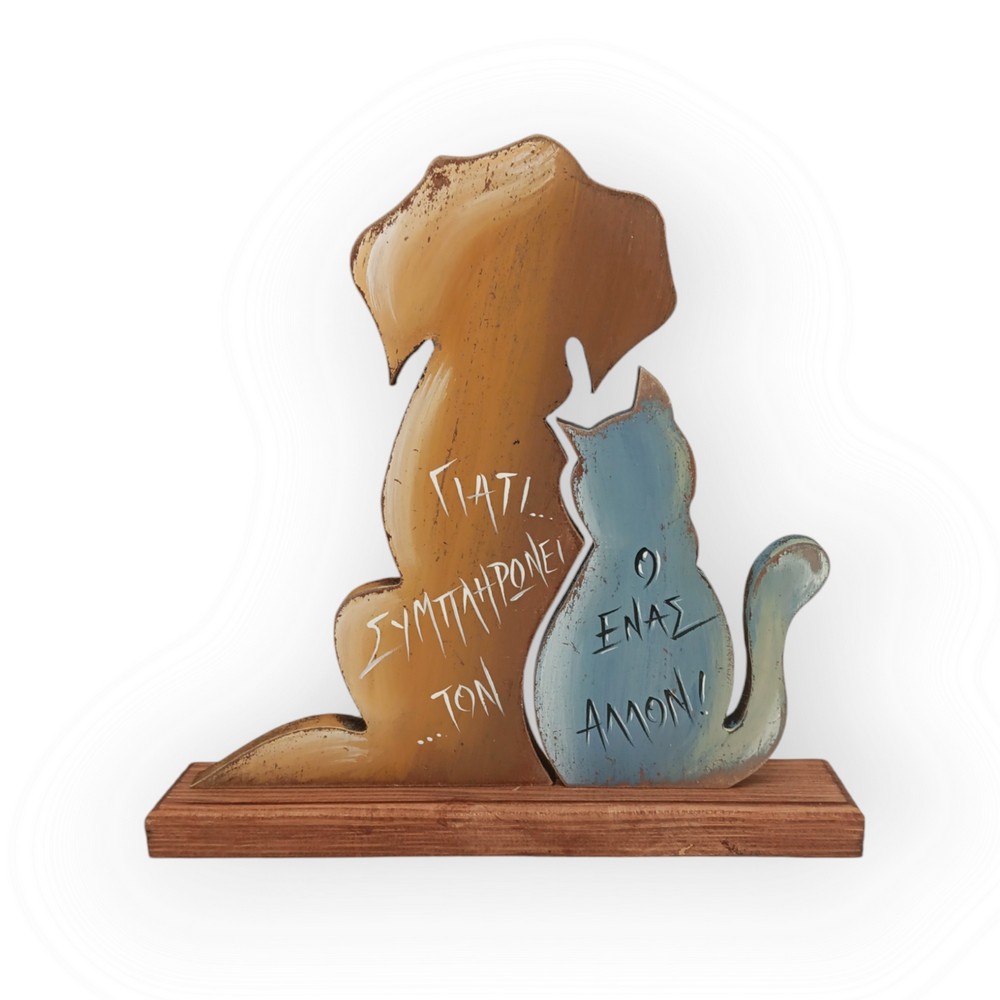 Επιτραπέζιο σχήμα σκυλάκι γατούλα ενωμένα μήνυμα “γιατί με συμπληρώνεις..”