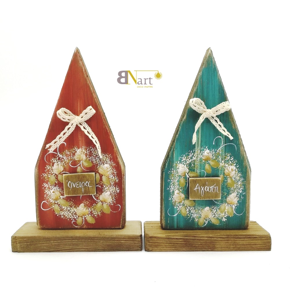 Επιτραπέζιο σετ 2 τεμ. σχήμα σπιτάκι με μηνύματα όνειρα / αγάπη 14x22 cm