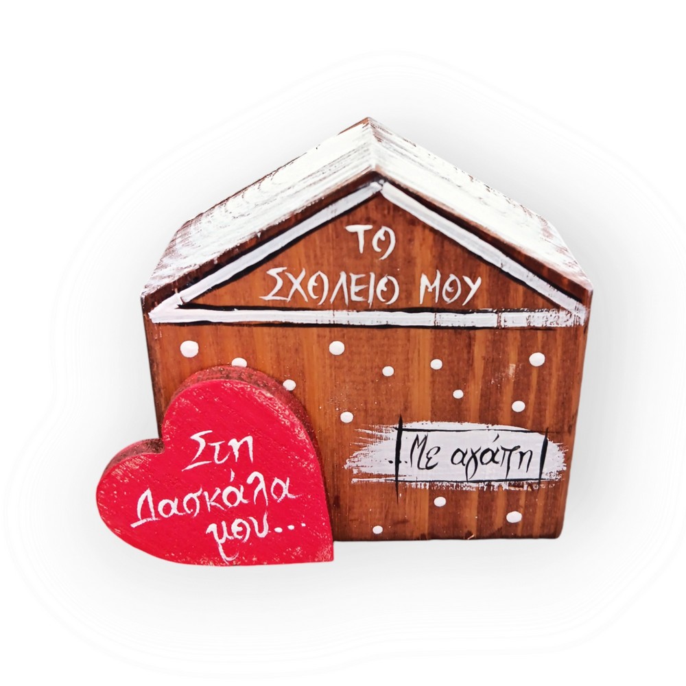 Επιτραπέζιο τουβλάκι σχήμα σπίτι με καρδούλα, για τη δασκάλα.