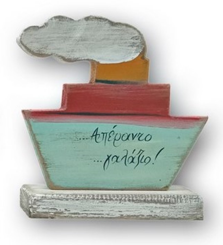 Επιτραπέζιο ξύλινο Καραβάκι με καπνό "Απέραντο γαλάζιο" 12x13 cm