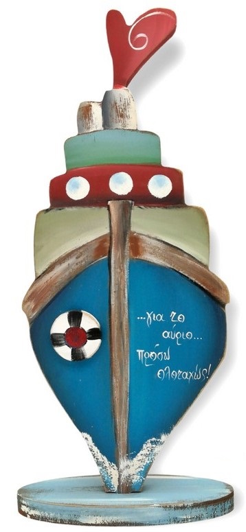 Επιτραπέζιο ξύλινο καράβι με φουγάρο καρδιά 14x31 cm