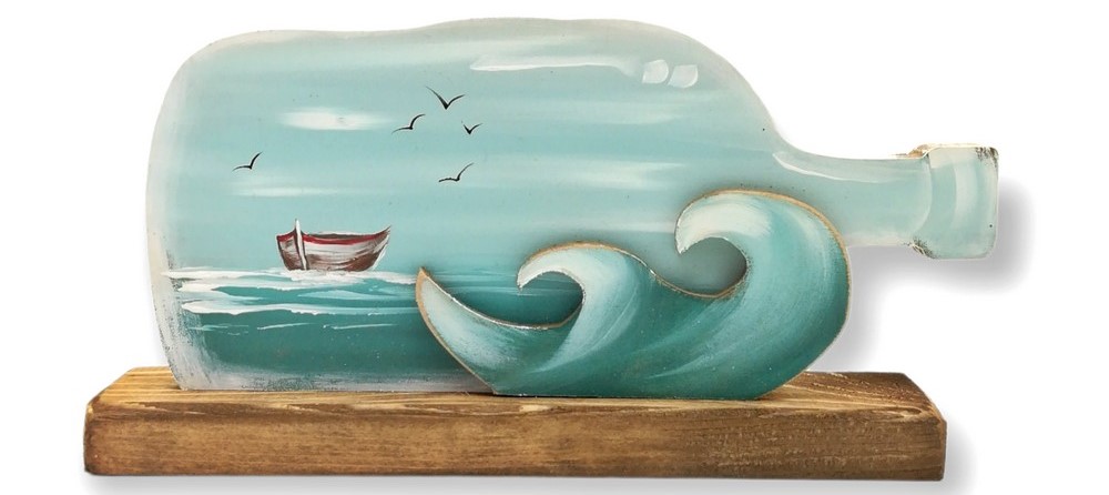 Επιτραπέζιο ξύλινο μπουκάλι σε βάση κύμα 10x20 cm