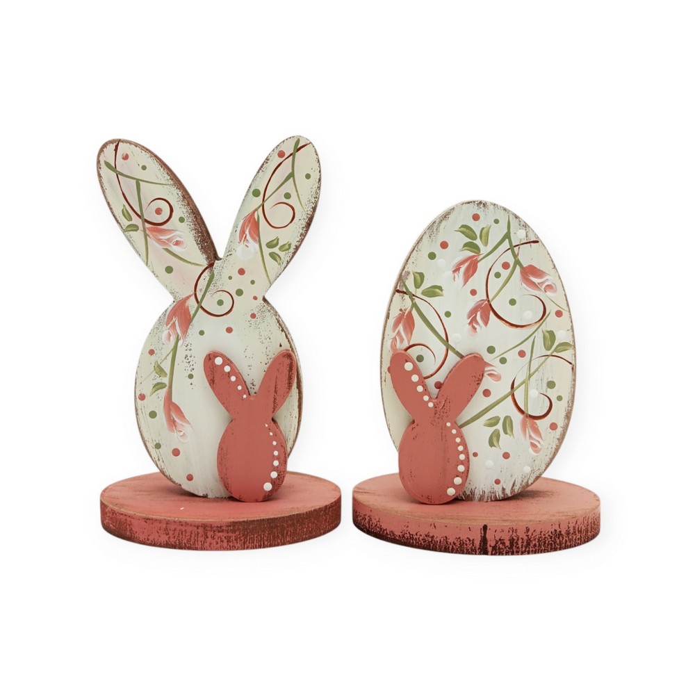 Επιτραπέζιο ξύλινο σετ 2 τεμαχίων Λαγουδάκι & Αυγουλάκι ( ροζ ) 16x10χ1 & 13x10 cm