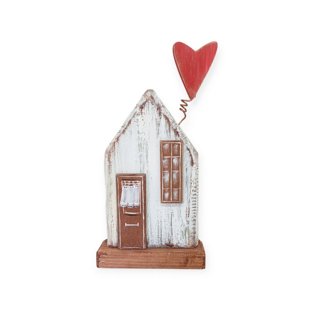 Επιτραπέζιο ξύλινο σπιτάκι με σίδερο και κόκκινη καρδιά 24x12 cm