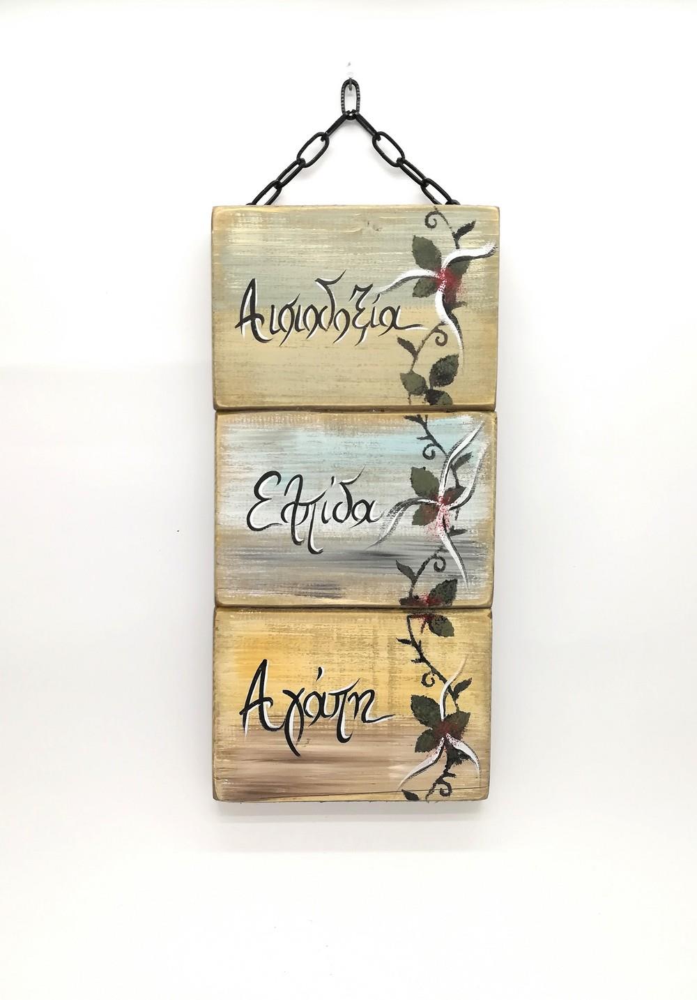 Καδράκι τρίπτυχο με μηνύματα Αισιοδοξία-Ελπίδα-Αγάπη
