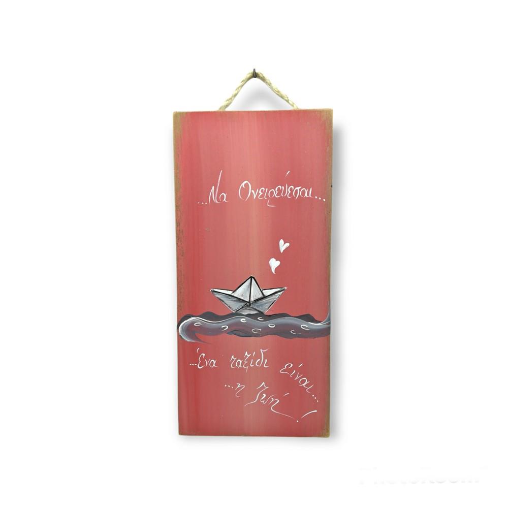 Πινακάκι επιτοίχιο ξύλινο με μήνυμα "Να ονειρεύεσαι..." 10x21 cm