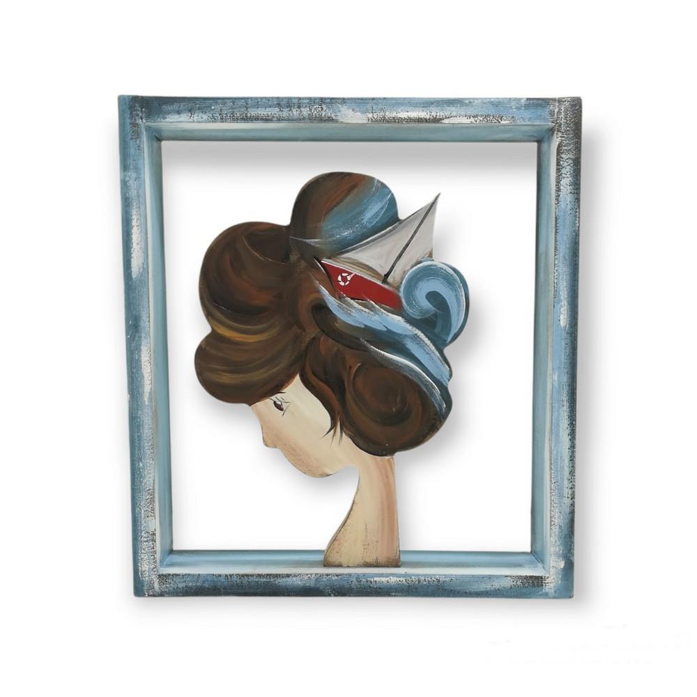 Πίνακας επιτοίχιος ξύλινος "Κοπέλα με καράβι" 24,5x23 cm