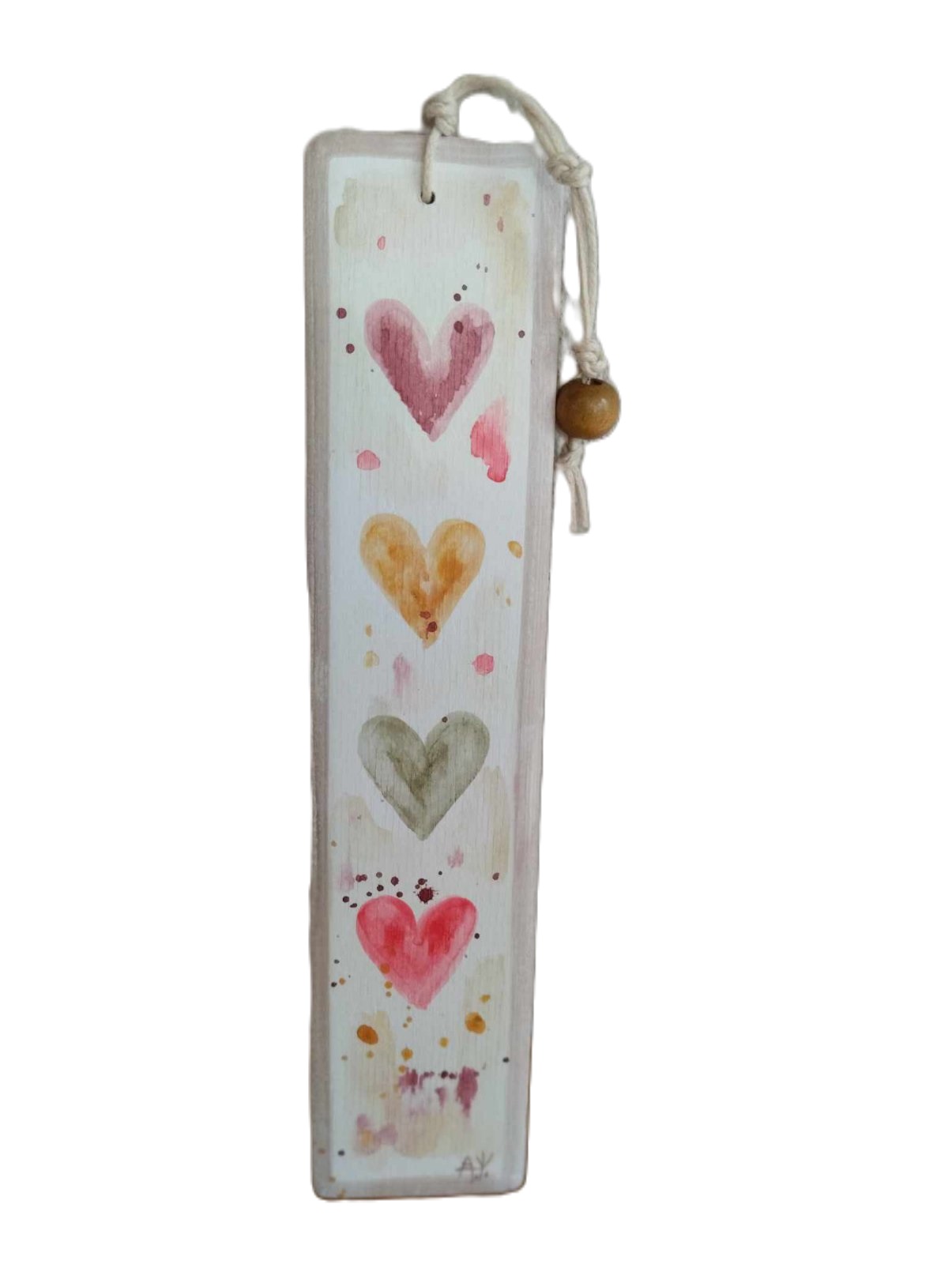 Σελιδοδείκτης ξύλινος Καρδιές 4x18,5 cm