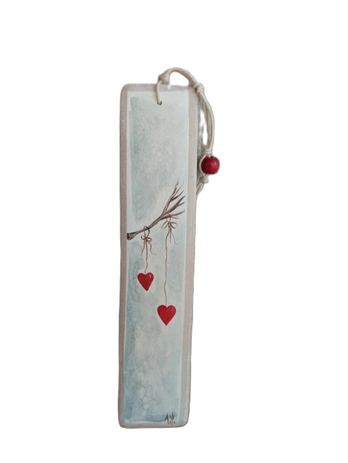 Σελιδοδείκτης ξύλινος Καρδιές σε δέντρο 4x18,5 cm
