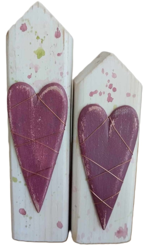 Σπιτάκι διακοσμητικό ξύλινο με καρδιά λευκό - μπορντώ 4,5x8,5x16,5 cm