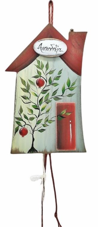 Σπιτάκι επιτοίχιο ξύλινο με Ρόδια και μήνυμα Αισιοδοξία 13x22 cm
