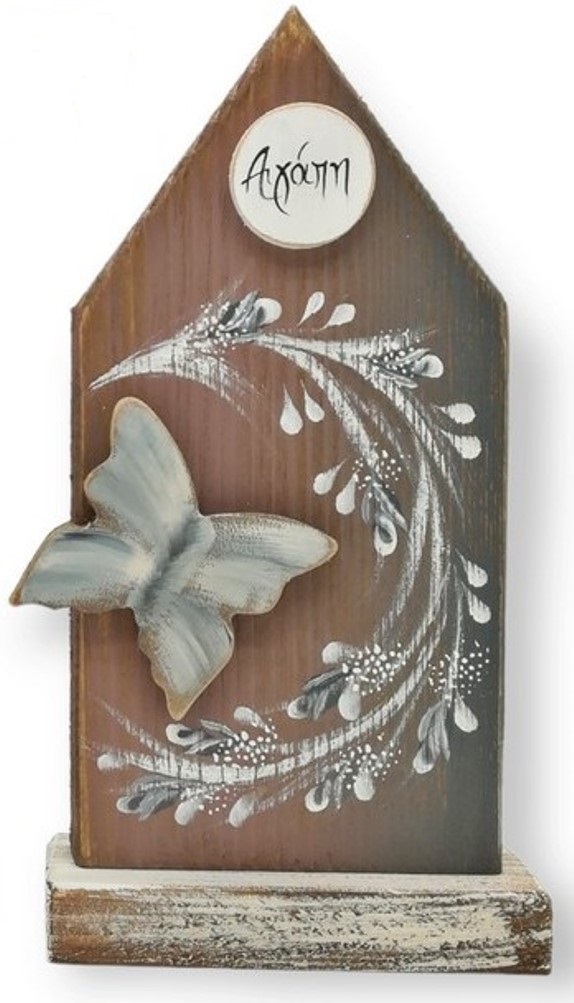 Σπιτάκι επιτραπέζιο ξύλινο με πεταλούδα και μύνημα Αγάπη 11x21,5 cm