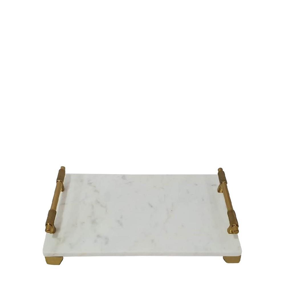 Δίσκος Espiel μαρμάρινος ορθογώνιος μπρούτζινες χρυσές λαβές λευκό 38x23x8 cm