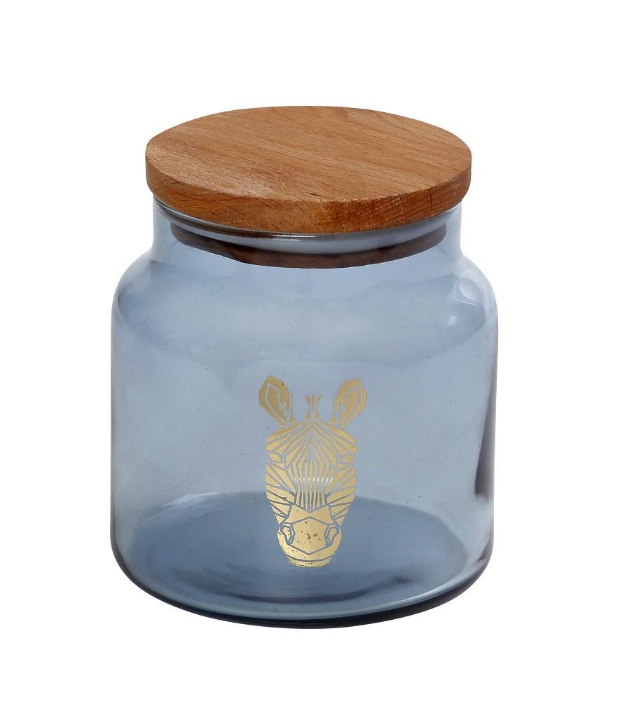 Δοχείο Espiel γυάλινο με ξύλινο καπάκι Jungle zebra μπλε 635 ml 10x11 cm