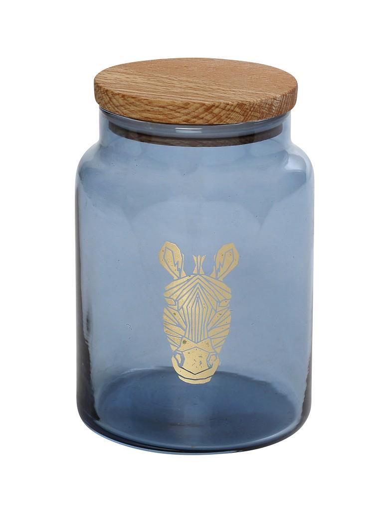 Δοχείο Espiel γυάλινο με ξύλινο καπάκι Jungle zebra μπλε 890 ml 10x14,5 cm