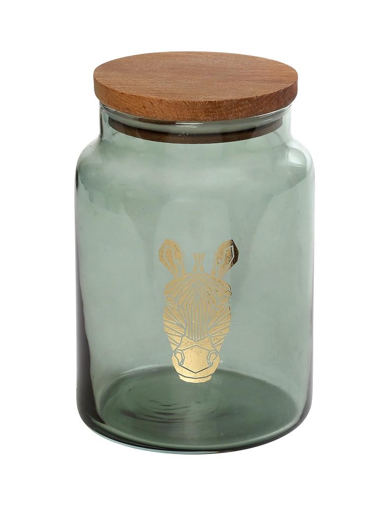 Δοχείο Espiel γυάλινο με ξύλινο καπάκι Jungle zebra πράσινο 890 ml 10x14,5 cm