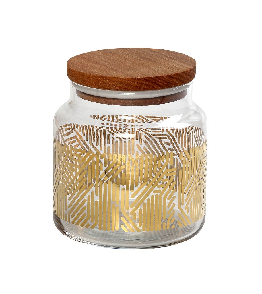 Δοχείο Espiel γυάλινο με ξύλινο καπάκι Labyrinth gold - διάφανο 635 ml 10x11 cm