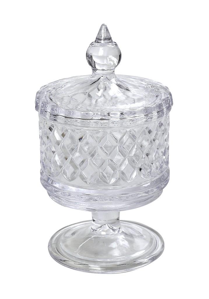 Δοχείο Espiel γυάλινο σκαλιστό με πόδι και καπάκι διάφανο 5 - 6 mm 8x13 cm
