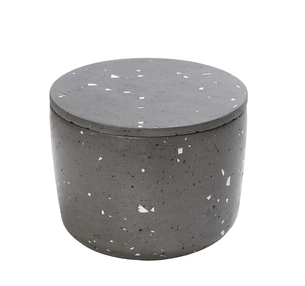 Δοχείο Espiel τσιμεντένιο κυλινδρικό με καπάκι μωσαικο σκούρο γκρι μεγάλο 13x13x9 cm
