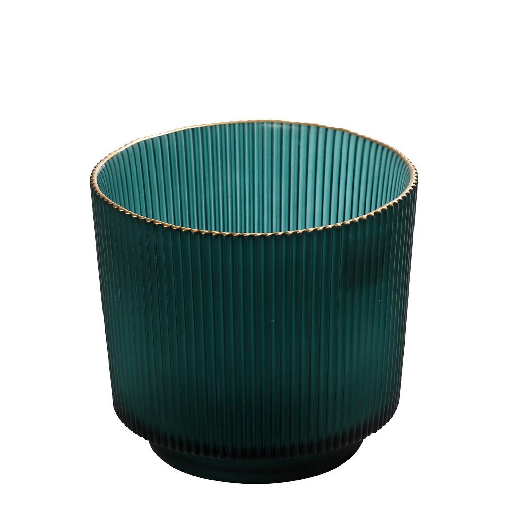 Μπωλ Espiel γυάλινο στρογγυλό Mystery τιρκουάζ με χρυσό χείλος 15x14 cm