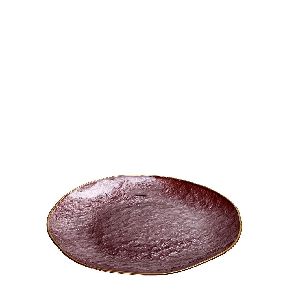 Πιατέλα Espiel γυάλινη στρογγυλή Shine με χρυσό χείλος ροζ 28x2 cm