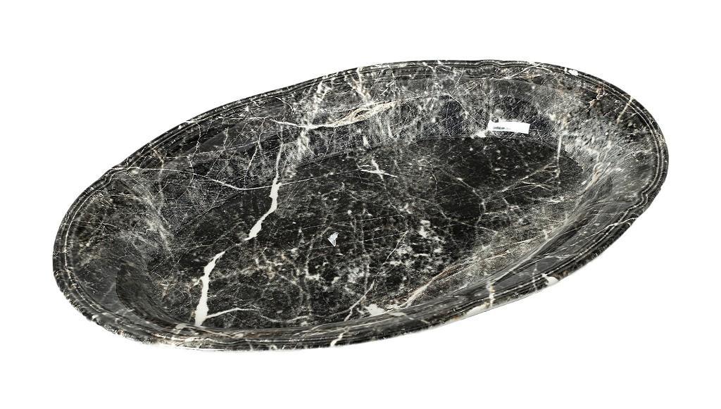 Πιατέλα Espiel κεραμική οβαλ Marble μαύρη 33x22 cm