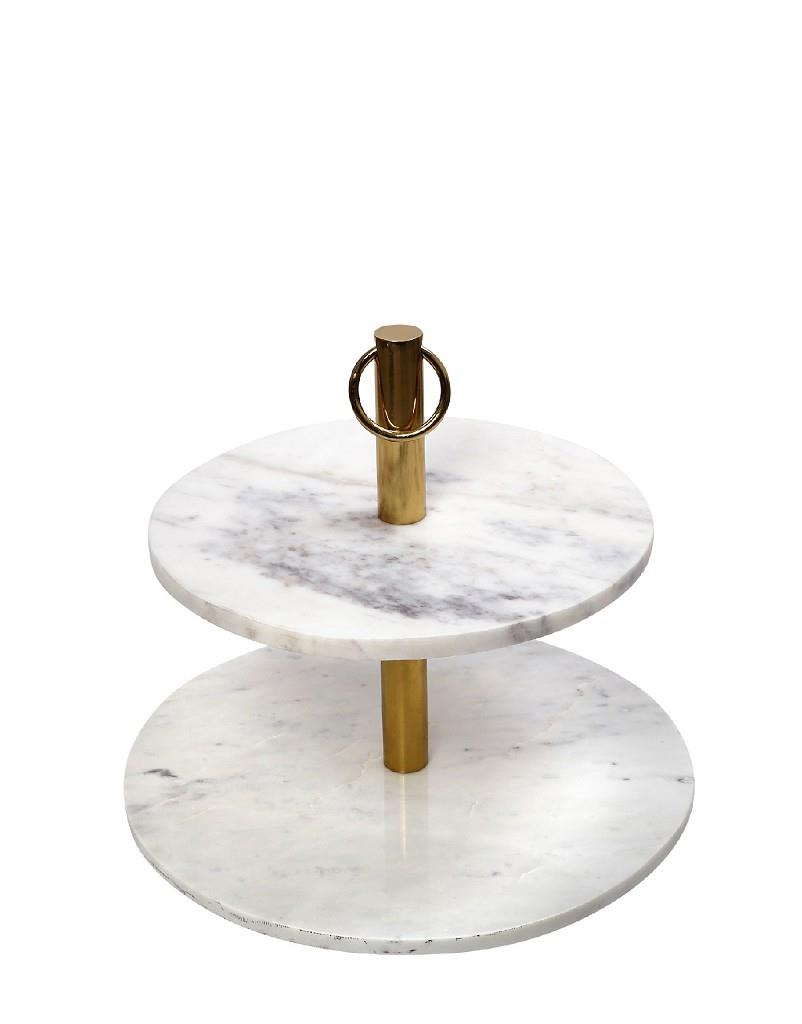 Πιατέλα Espiel μασίφ μάρμαρο στρογγυλή 2 επιπέδων λευκή 41-33x40 cm