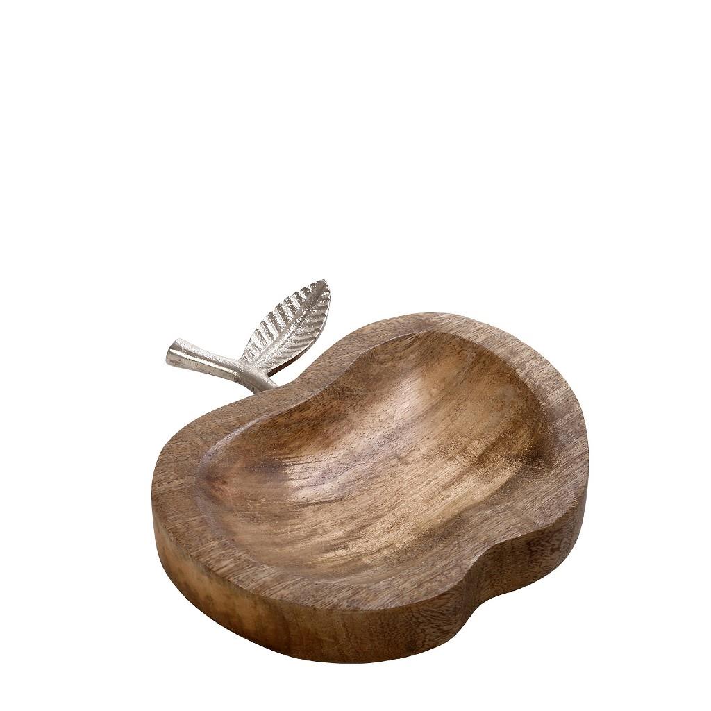 Πιατέλα Espiel ξύλινη διακοσμητική ''μήλο'' με ασημί μεταλλική λαβή φυσικό 15x14 cm
