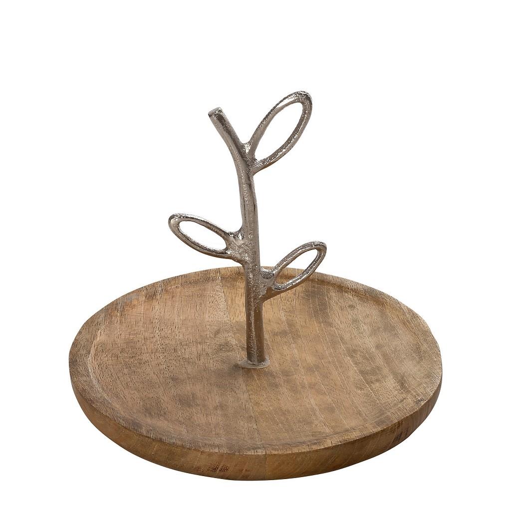 Πιατέλα Espiel ξύλινη στρογγυλή με ασημί μεταλλική λαβή φυσικό 25x21 cm