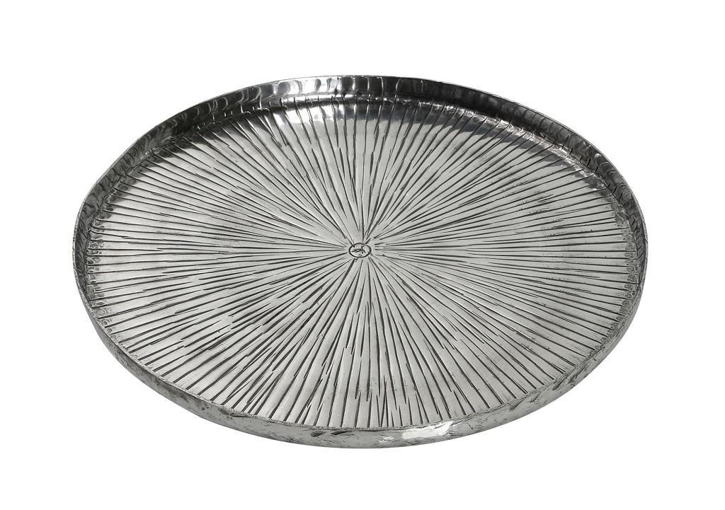 Πλατώ σερβιρίσματος Espiel αλουμινίου στρογγυλό Pandora "γραμμωτό" ασημί 26,5x1,5 cm