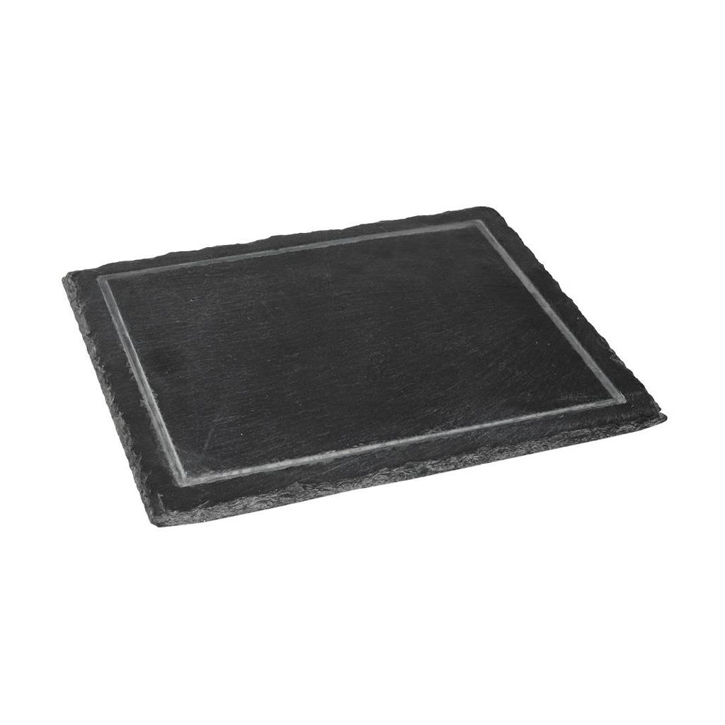 Πλατώ σερβιρίσματος Espiel πέτρινο ορθογώνιο με αυλάκι μαύρο 5mm 32x27 cm