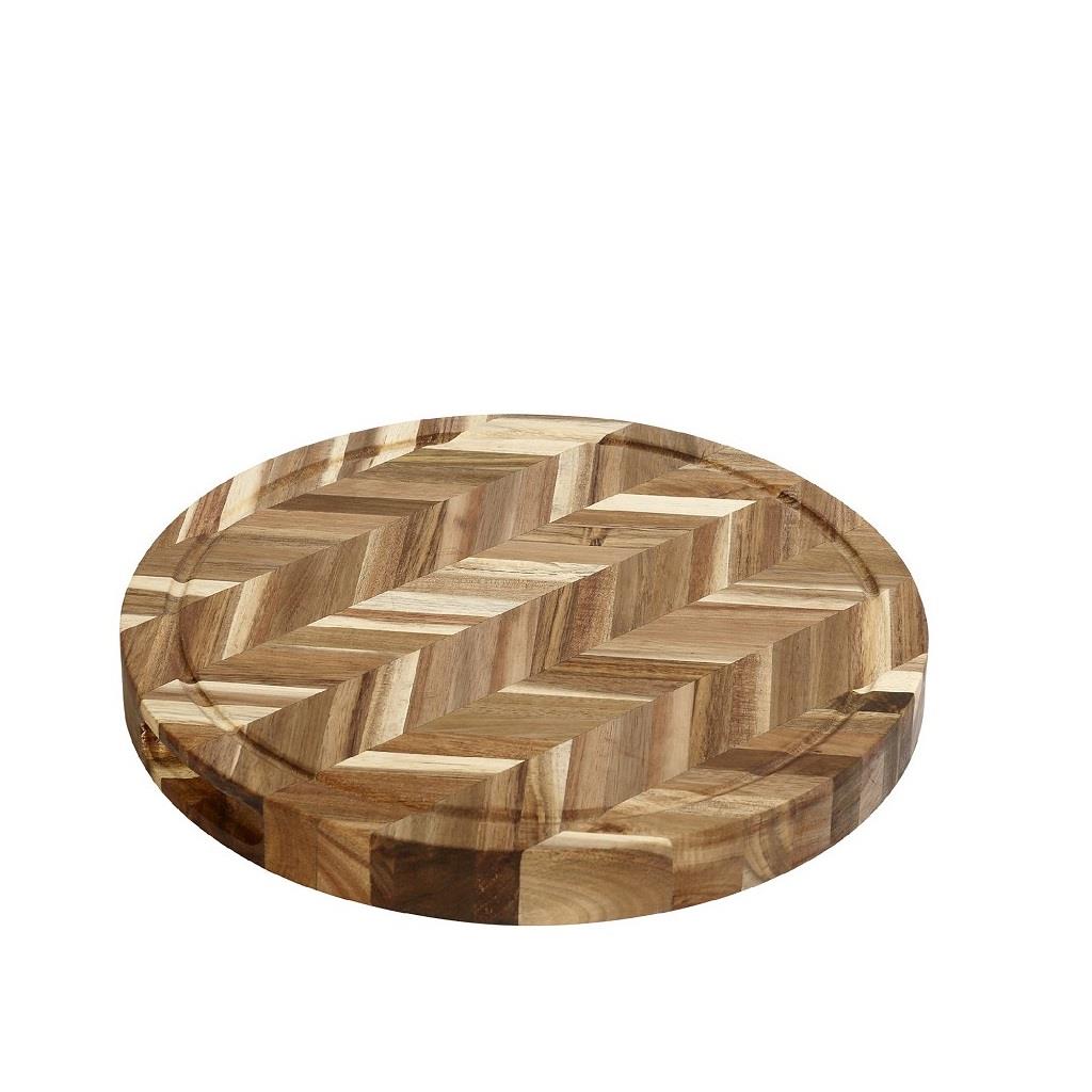 Πλατώ σερβιρίσματος Espiel ξύλινο στρογγυλό zig-zag με αυλάκι φυσικό 32x3,5 cm