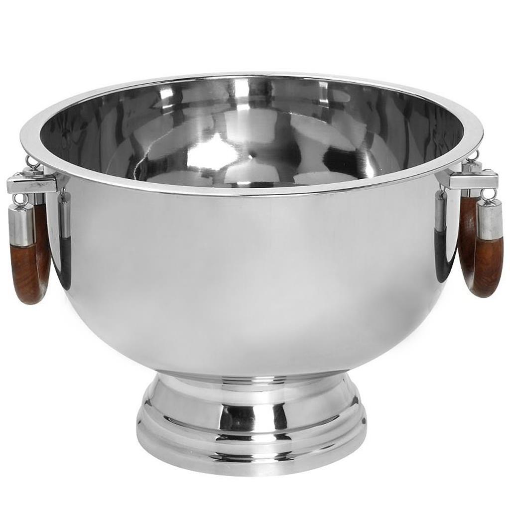 Ποντσιέρα Espiel ανοξείδωτη στρογγυλή διπλότοιχη με ξύλινα χερούλια ασημί 39x28 cm