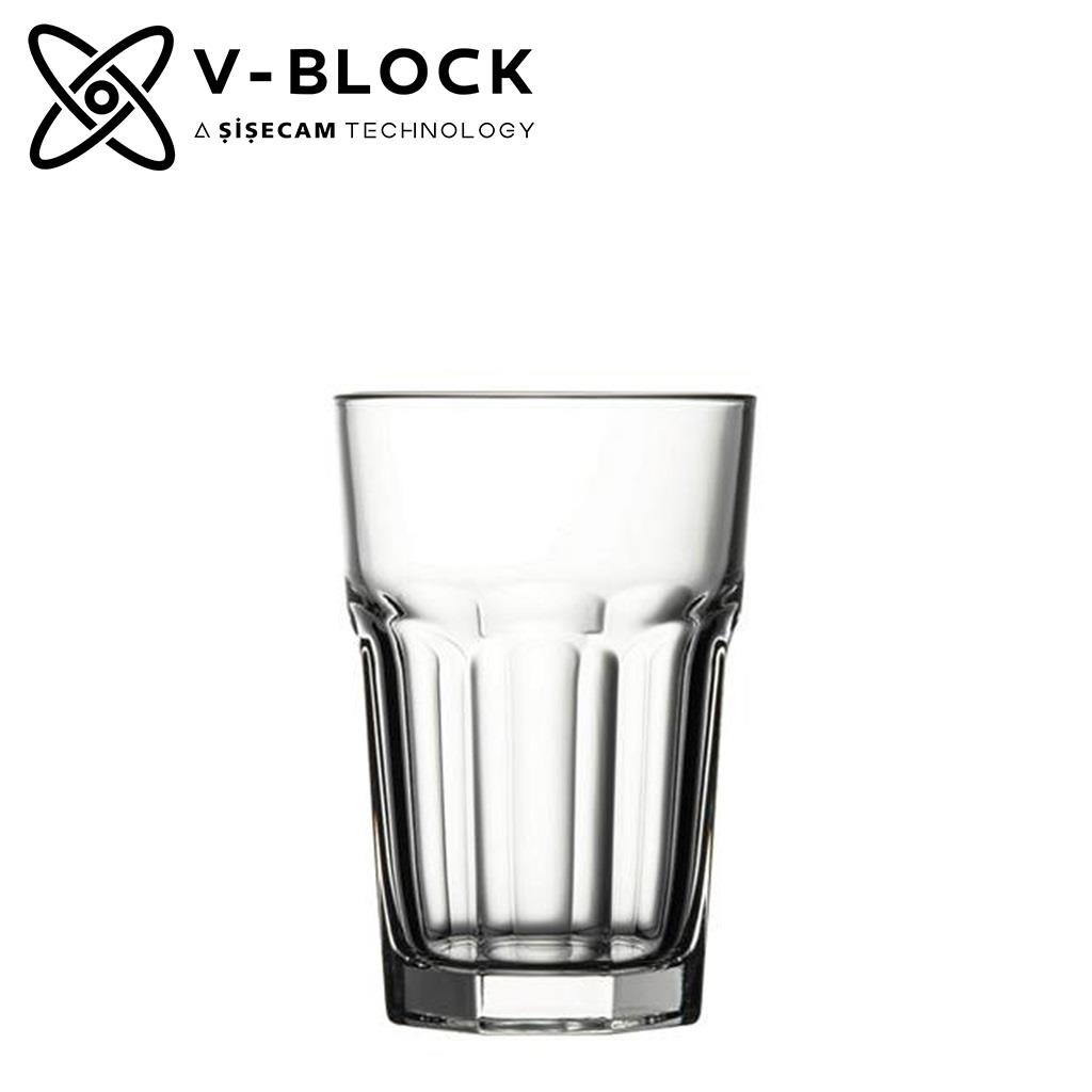 Ποτήρι Pasabahce γυάλινο νερού δύσθραυστο V - block casablanca διάφανο 355 ml 12,2x8,3 cm
